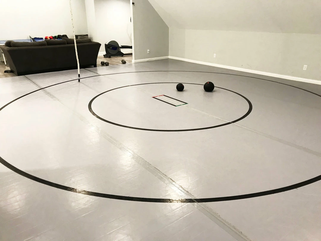 Mat circle measures 20 feet in diameter for outside circles and 96 inches in diameter for the inner circle.