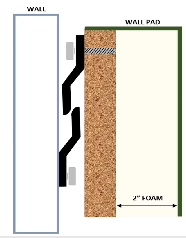 - Right wall:Â 8 wall pads – 4Â panels wide x 2 panels tallÂ
