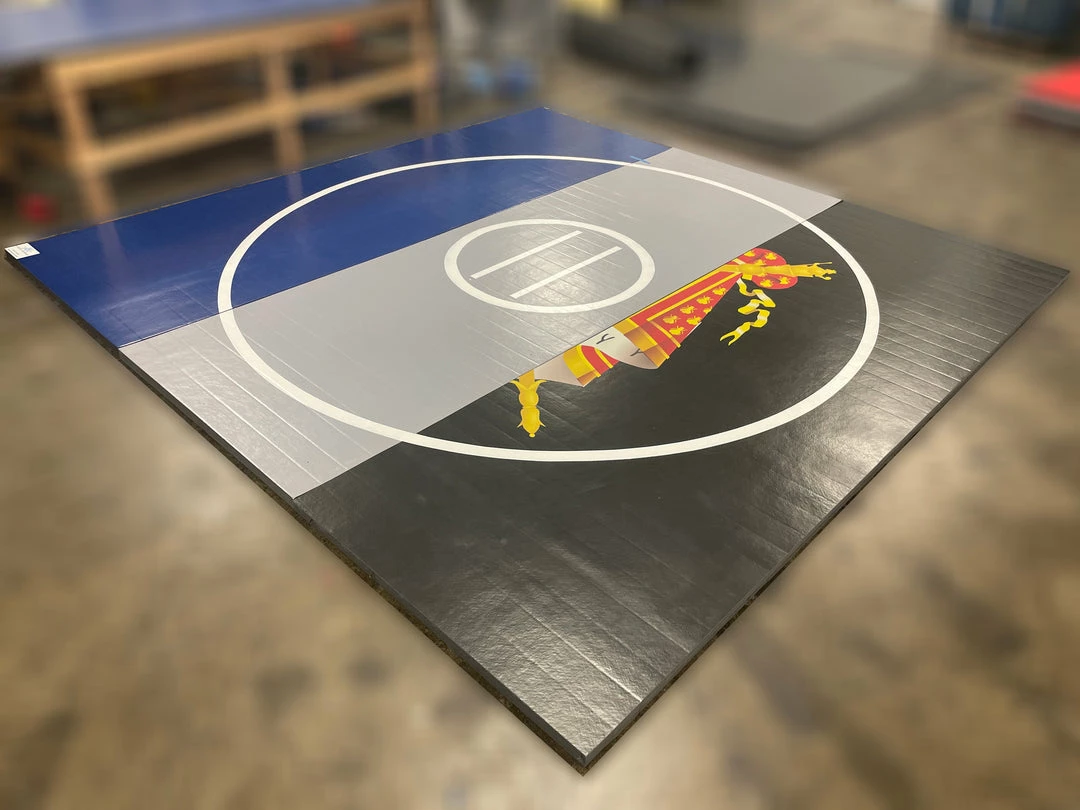 All of our wrestling mats are perfect for professional or home use. Our roll-up mats have been purchased by numerous schools, after school programs, and government facilities. The custom sized 12′ x 12′ Roll-Up Wrestling Mat ships in three separate lightweight pieces.. The mat is constructed of firm cross linked polyethylene foam in the industry standard thickness of 1 5/8″ to provide supportive protection for wrists, ankles and throw downs. The 22 ounce vinyl covering the mat is antifungal, antimicrobial and will not support mildew. To clean the mat of physical contaminants, we suggest nonabrasive cleaners.