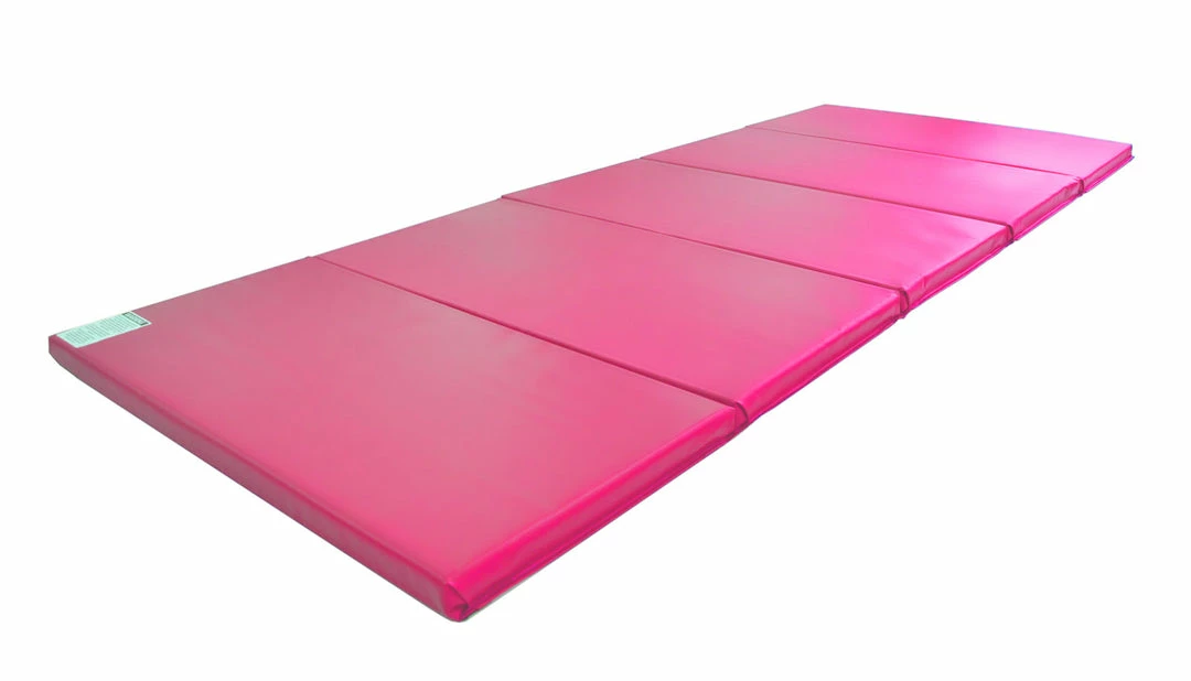 The 4’ x 10’ x 1 ⅜” Gymnastic Mats folds into 2’ sections for easy storage and shipping. Constructed of 1 ⅜” thick firm cross linked polyethylene foam to offer essential support for ankles and wrists for high impact activities such as advanced gymnastics, cheer, martial arts, yoga, and pilates. The exercise mat is encased in an 18 ounce vinyl coated nylon cover that is lead and phthalate free, antimicrobial, antifungal, and mildew resistant. Fastening straps are attached on ends of mat to make it possible to attach additional mats to make a longer exercise area. This item is CPSIA Certified and Made in the U.S.A.!