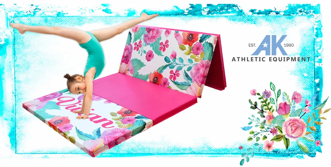 - 4′ x 8′ x 2″ folding gymnastics mats fold accordian style for easy storage and transportation