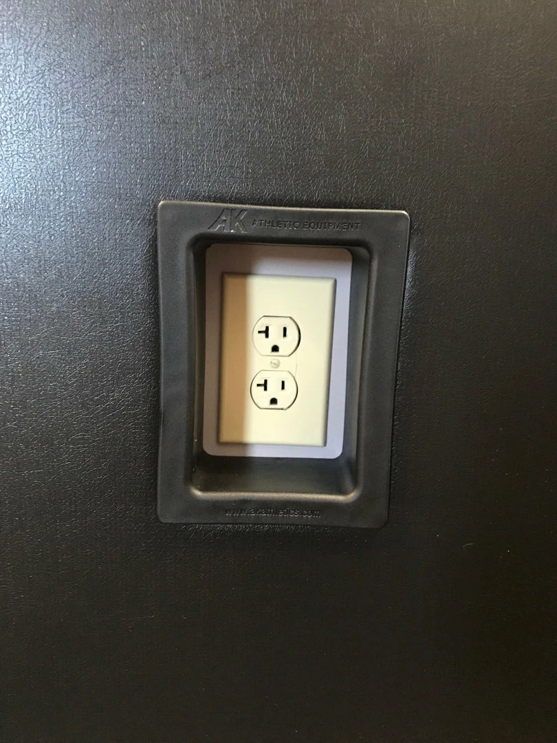 Each outlet insert can be used to cover exposed foam and wood when a cutout is made for an outlet or electrical switch in our wood backed wall padding. Each gym wall padding insert has a supportive back and front composed of flexible plastic to maintain structural integrity of the wall pad- even if multiple inserts are used in one panel. The inside measurements of the cut out insert are 4″ wide x 6″ tall.