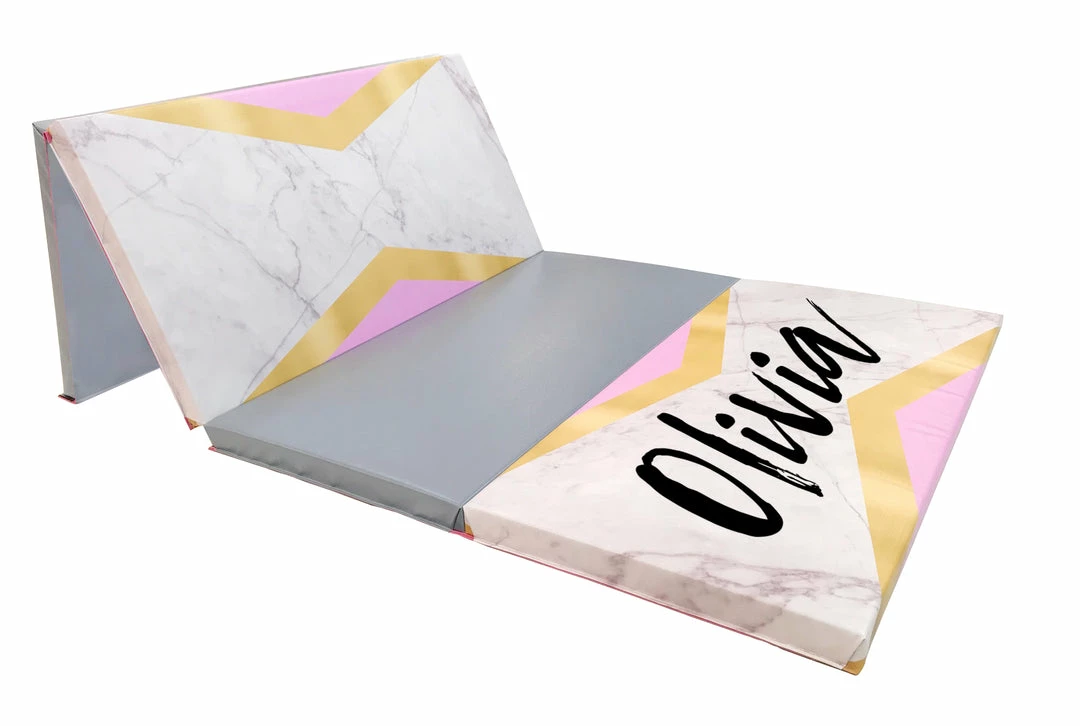 AK Athletic Equipment Pink And Gold Monogram 4′ X 8′ Folding Gymnastics Mat
