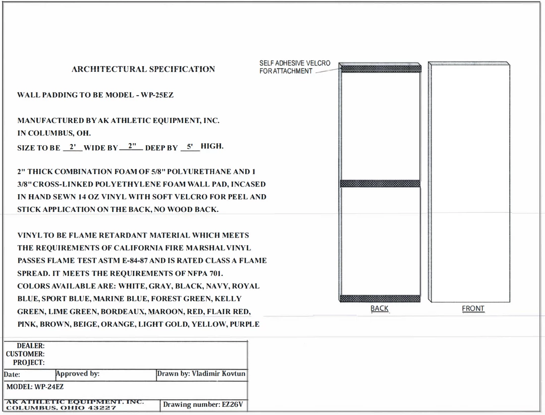 Easy Stick wall pads provide a protective and attractive wall covering that comes standard with self-adhesive fastening strips for an easy and lasting installation. Each 2″ thick panel is constructed with 3.7 LB polyurethane foam and is 2ft wide.