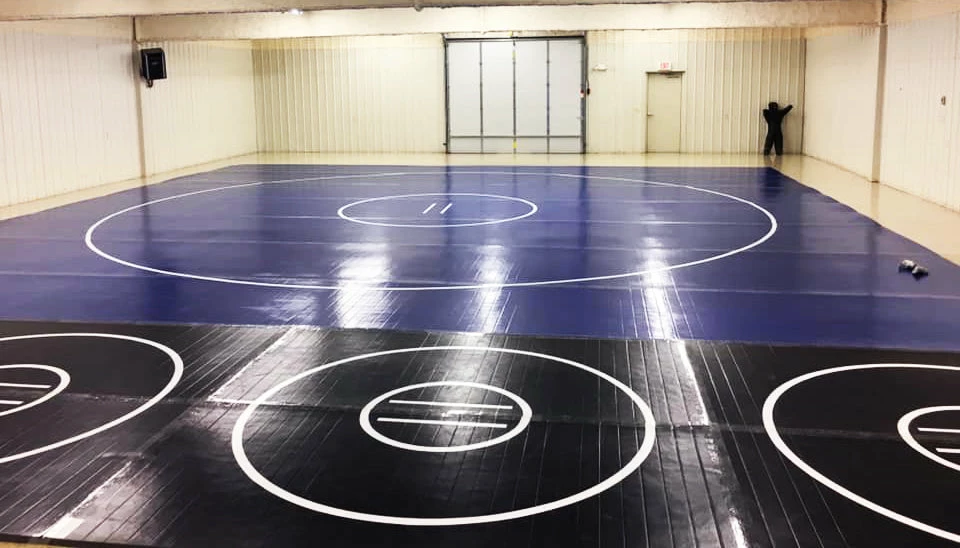 This extra large wrestling mat ships in seven lightweight sections to fit a 42’ x 42’ workout space. This product meets all specifications for safe use in schools, professional training facilities and home use. The padding is the industry standard thickness of 1 ⅜” and is constructed of cross linked polyethylene foam to provide firm support and protection for intense workouts and competitions. the mat is covered in 22 ounce vinyl that is antimicrobial, antifungal and will not support mildew. To clean physical contaminants from the mat we suggest using a non abrasive cleaner.